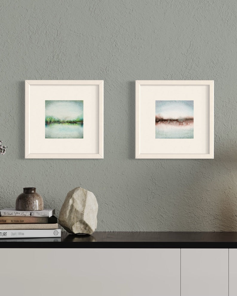 This dreamy lake is painted using delicate watercolours which are derived from real minerals, the bluish green in this artwork is made from Jadeite which is a crystal known for confidence, acceptance, and health. A protective stone, Jade keeps the wearer from harm and brings harmony.