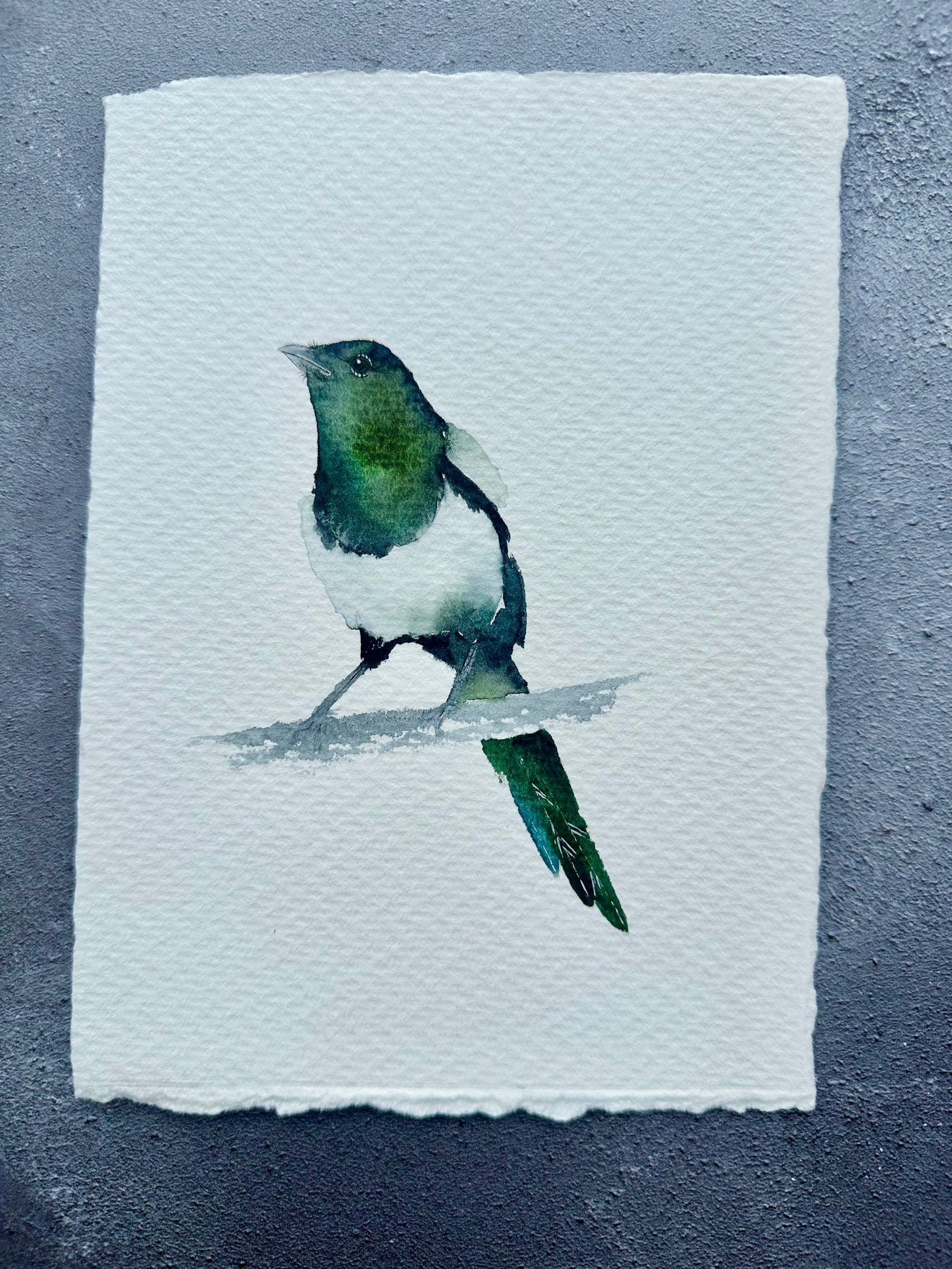 This charming original watercolour captures a cheeky Magpie with a lively, impressionist flair. Soft, feathery strokes bring out its fluffy texture, inviting you to imagine its gentle touch. Perfect for adding a dash of whimsy and nature’s delight to your space, this piece playfully celebrates the Magpie’s mischievous spirit. A joyful homage to the simple charm of our feathered friends.