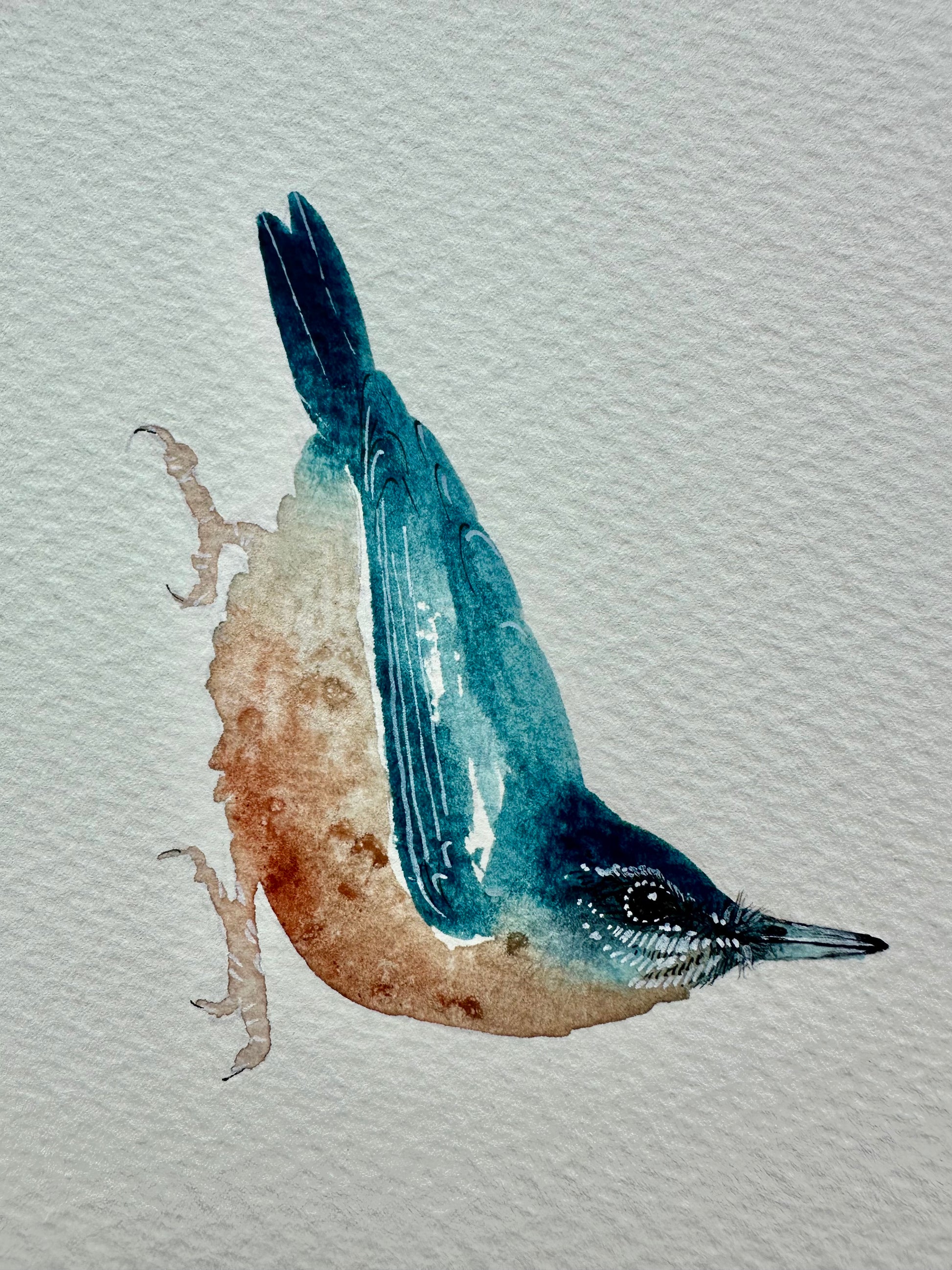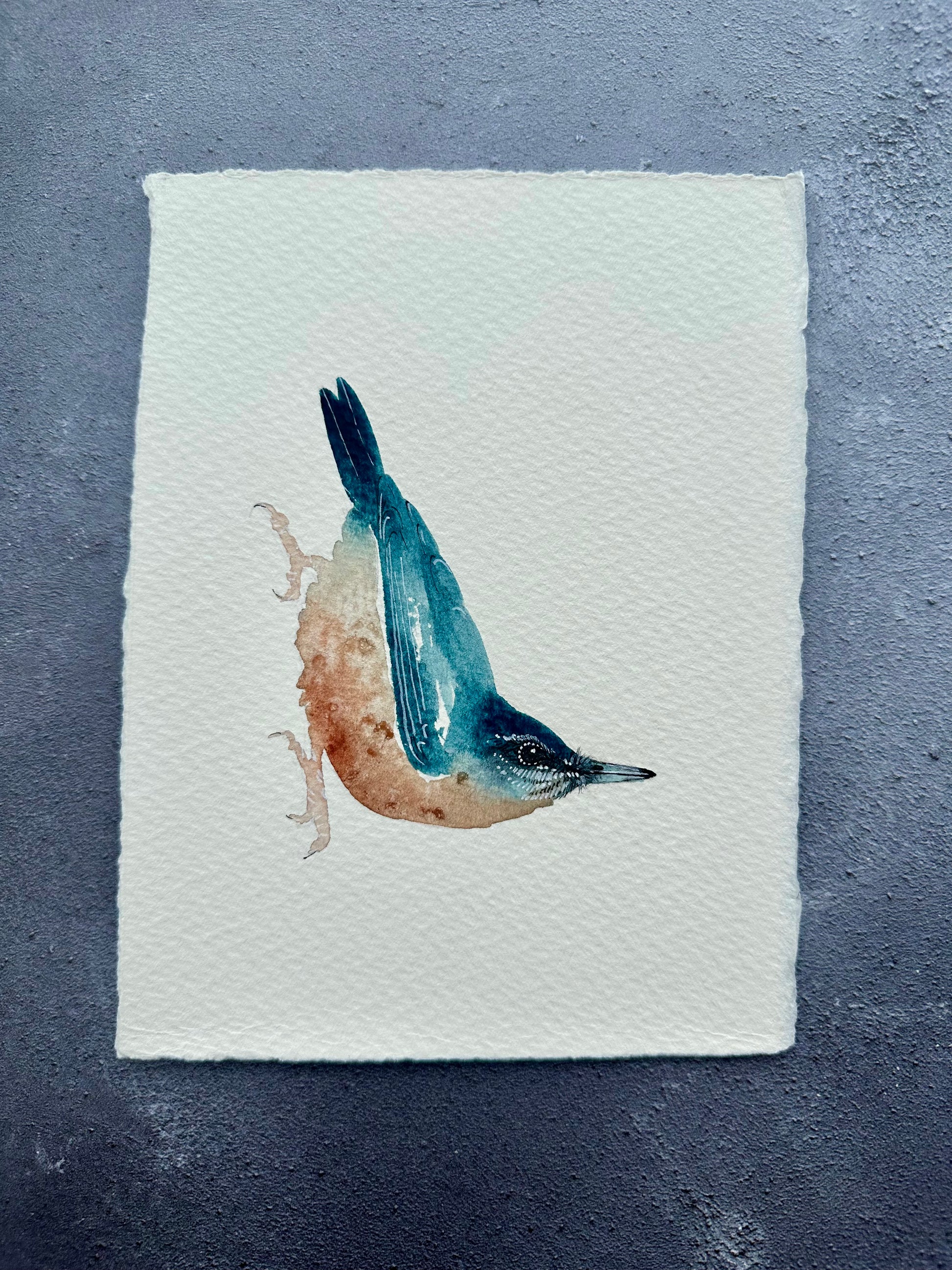 This charming original watercolour painting of a Nuthatch brings the little bird to life with a playful, loose impressionist style. The soft, feathery strokes capture its delicate fluffiness, making you almost want to reach out and feel its gentle texture. Perfect for adding a touch of whimsy and nature’s cheer to any room, this artwork celebrates the joyful spirit of the Nuthatch in a lighthearted and delightful way. It’s a sweet reminder of the simple beauty found in our feathered friends.