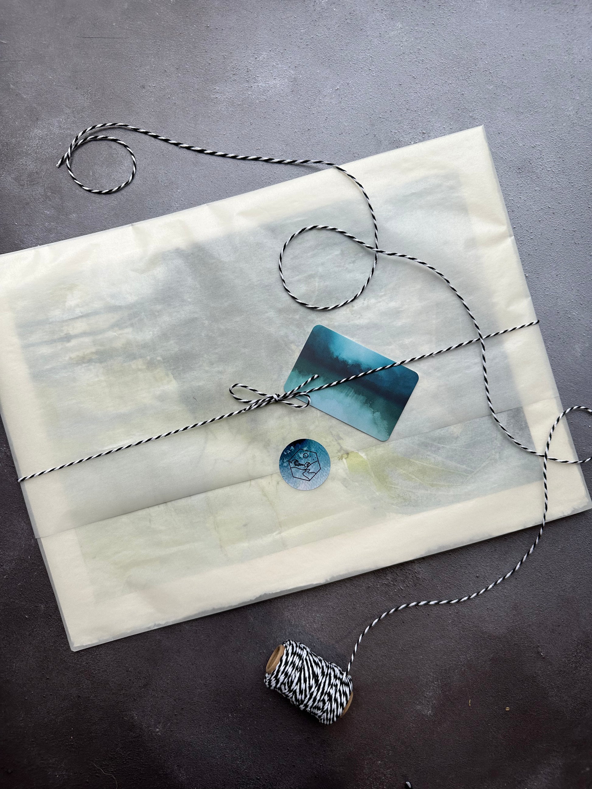 This artwork will be posted flat wrapped in glassine paper to protect it.