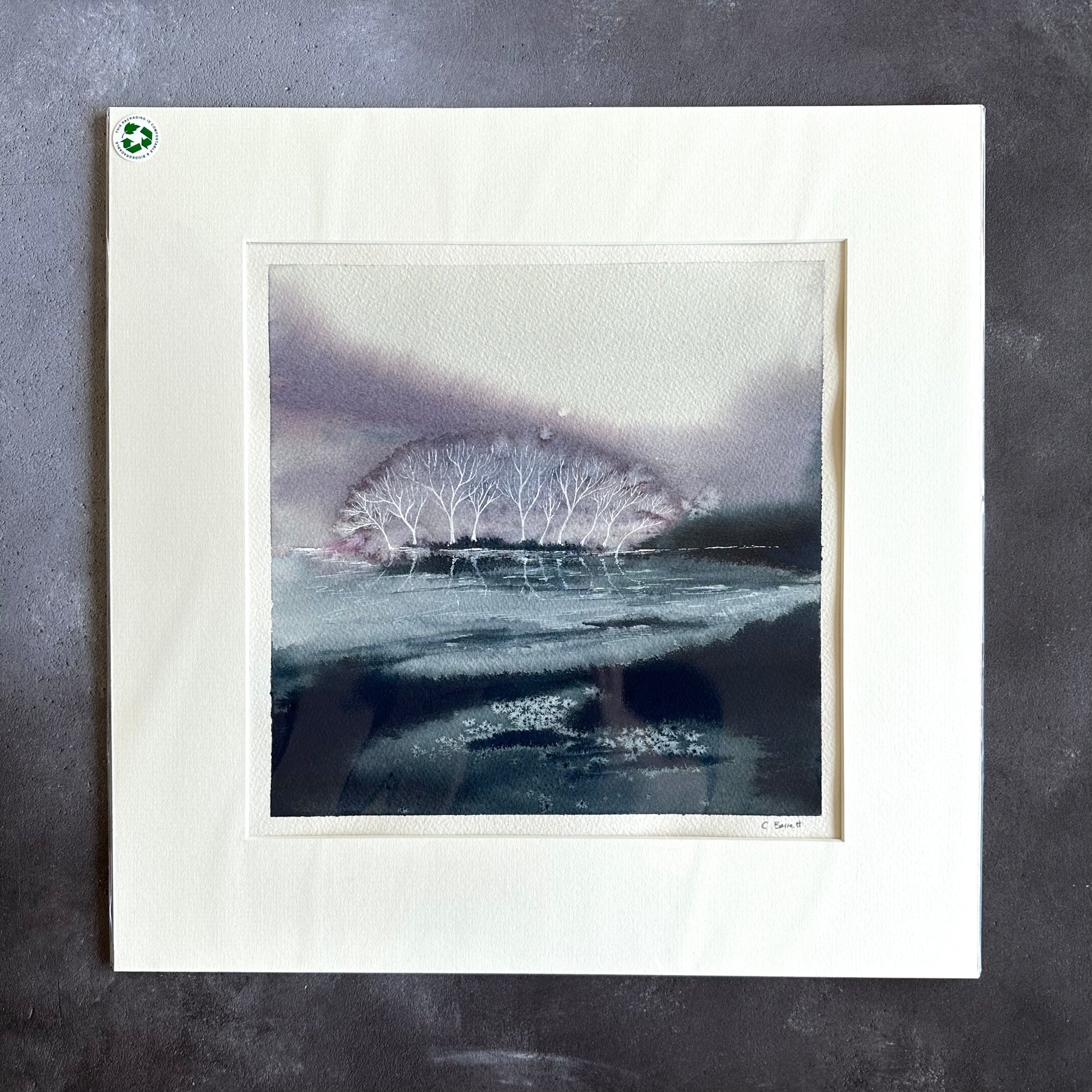 This artwork is painted using high-quality watercolours and acrylic inks onto heavy watercolour paper. It has been professionally mounted with an acid-free mount and back and is wrapped in eco-friendly compostable film.