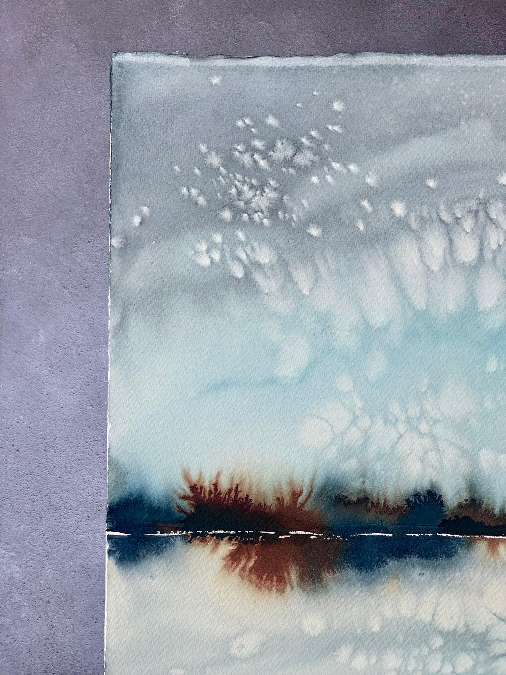 This large piece of artwork is painted using watercolour paints onto St. Cuthbert's Mill heavy watercolour paper. This piece would look great with a thick white mount and modern medium size black frame.